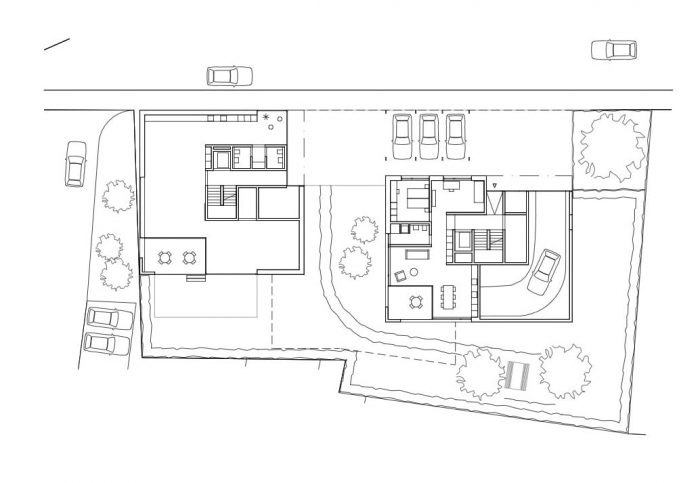 平面图、交通基础设施和物质化都考虑到了适合年龄的生活。两个体量都呈现出一个带有楼梯和宽敞电梯的核心结构。公寓的起居室和用餐区有三面照明,以及两面的凉亭,从上层可以看到湖景。