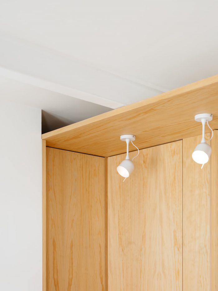 除了房间和卫生设施,其中的空间被用来最大限度地提高存储功能,一个壁橱也是用同样的木匠工艺建造的。