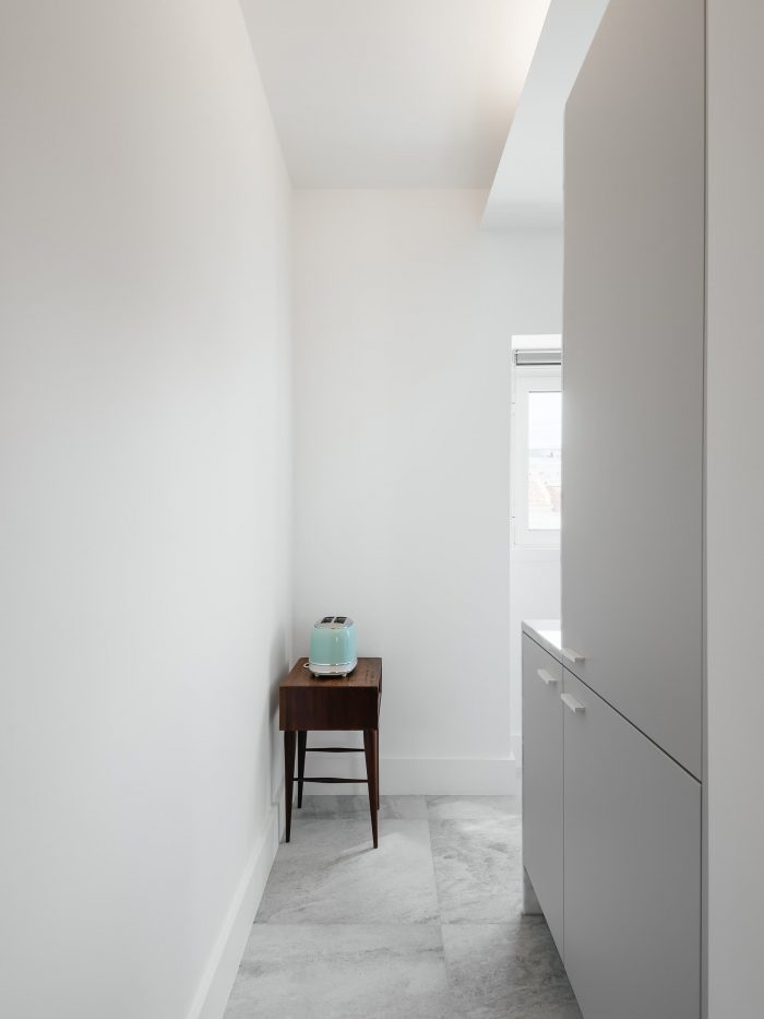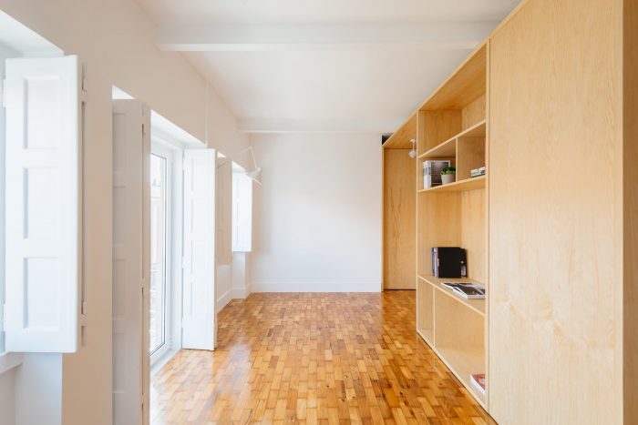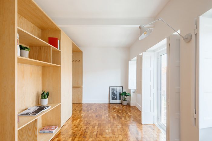 The apartment located in the characteristic Alvalade district of the '40s has an area of 48 m2, which became a challenge for a project aimed at creating a two-bedroom apartment with an expansion of the existing room.