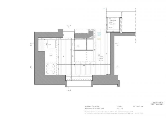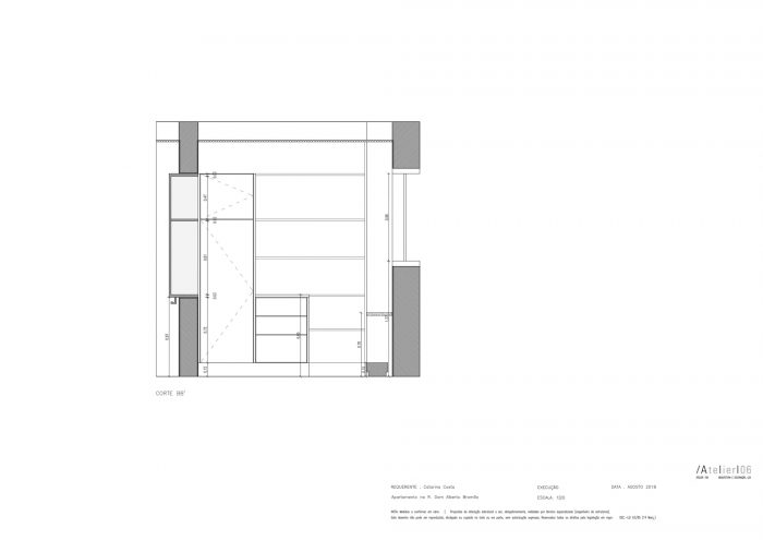 The biggest challenge consisted exactly at this point, creating a living/dining room, maintaining two bedrooms, and a more functional kitchen. In this sense, the design and a versatile piece that became the "spine" of this space was the solution found to solve the problems of definition and transition of areas, as well as storage.