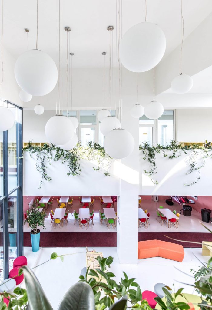 Multifunctional space where multipurposes are developed in one place, natural lighting in each space, variety of colors and incorporating of green in the interior are some of the components that characterize the new campus of the American School of Kosovo.