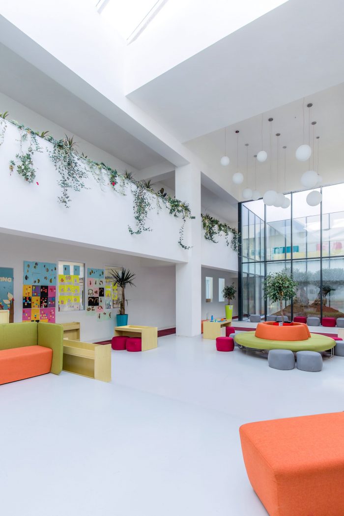 The kindergarten is characterized by the central gallery, which connects all the surrounding spaces together with the internal atrium, within which grows a multi-year olive. This tree impresses that it will be there and will be conveyed by generation and generation! .. Olive knows all the pupils, it knows which of them will be the leaders of the future !. From time to time, it gives the impression of a grandfather who expresses love from outside. Lighting that comes from above adds artistic value to the gallery and creates space for many functions, in one word creates life.