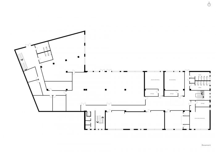 Considering the high school is dedicated to adolescents, of course is an environment with a larger area that reaches 6605 m2. The school is characterized by enlarged, horizontal and vertical elements.
