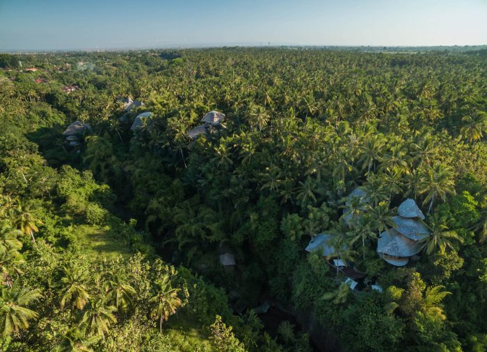 The drama and beauty of this property is best captured from a second living space, set above the master bedroom, and offset to point north-east directly towards the mother mountain of Bali, Mount Agung, visible on the horizon on a clear day. This room, unlike the family pavillion, can be fully enclosed with tall glass windows, and becomes the family's retreat on hot or stormy days. At dawn the sunrise light will flood through the lift in the roof, turning it into a golden glowing study.