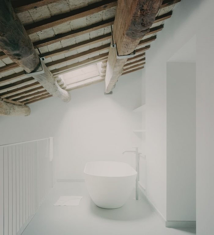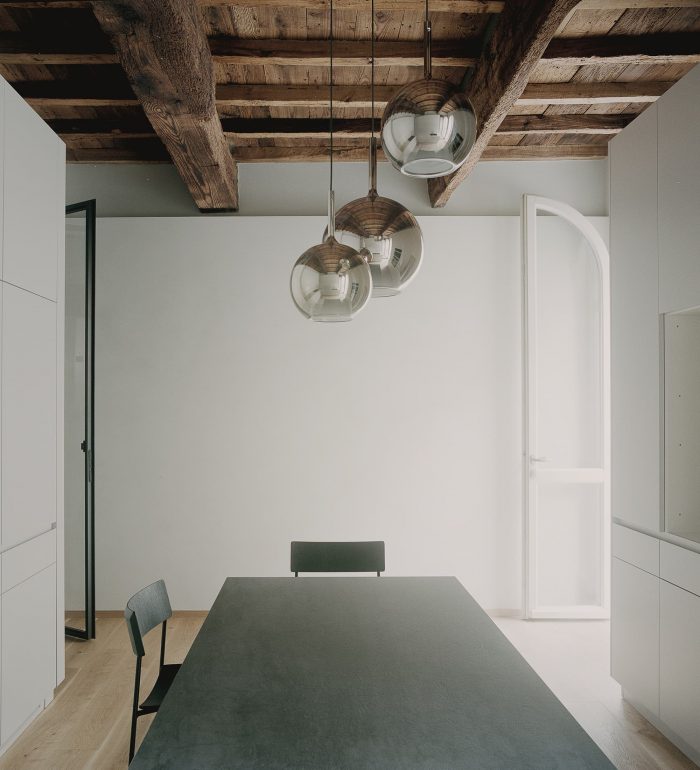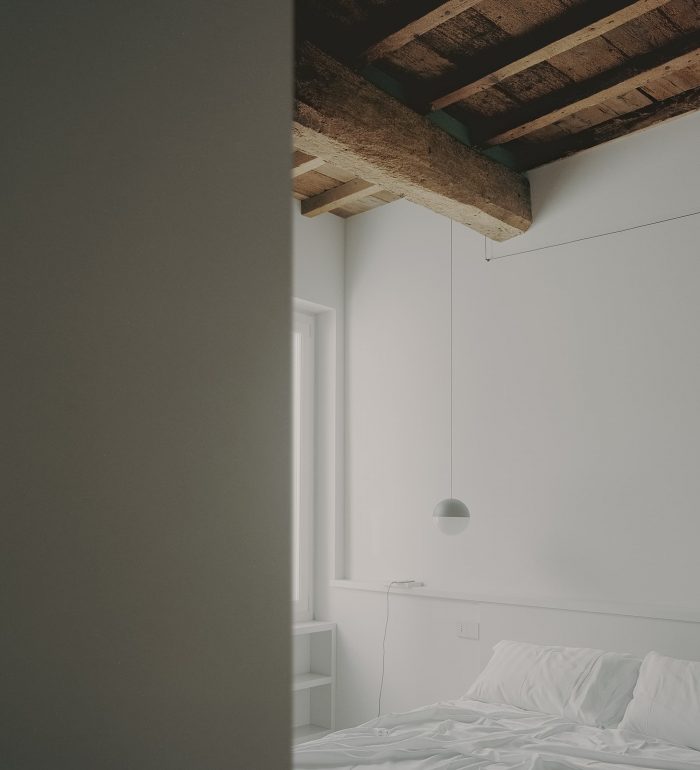 Anne is a house in the historical center of Ravenna. The aim of the project is to preserve and give value to all the morphological and typological elements that characterize the building and its architecture. The main feature of the house is the original wooden ceilings, discovered during construction and fully restored, as part of a delicate balance between the material heaviness of the existing built structure and the softness of the light filtered through the courtyard.