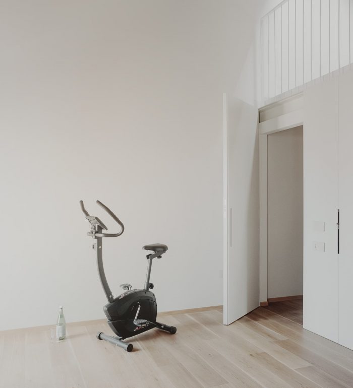 On the top floor, the demolition of the old false ceiling has revealed new unexpected spatial configurations, embellished and conceptually created through a continuous furnishing solution that conceals the services dedicated to the sleeping area and leaves the double-height volume free in its entirety.
