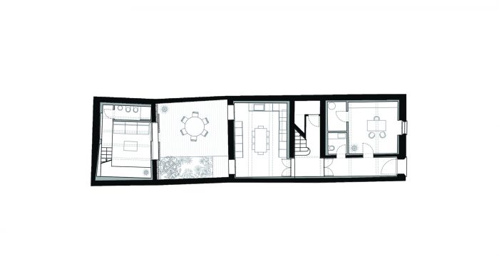 The main building is developed on three floors above ground connected by an internal barycentric staircase which, in fact, separates each floor of the building into two parts. The ground floor of the main building, from which the road access takes place, has been revisited keeping the original typological reading unchanged but, at the same time, focusing the design on the perspective axis that links the entrance and the internal court. Thus expressed, the courtyard becomes a real expansion of the house, recreating a single internal-external space, softened by the precious green space planted with essences such as Nandina Domestica and various medicinal spices. The existing staircase, a fundamental typological element of the nature of the building, is kept unchanged and safeguarded through conservative choices that respect its value.