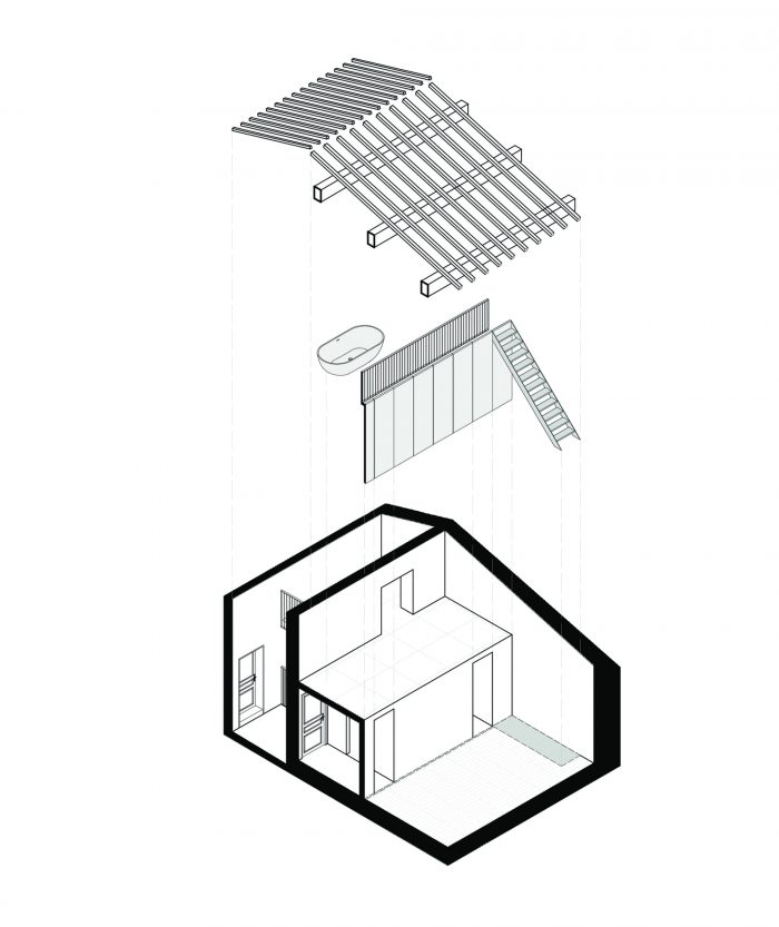 主体建筑在地上三层,由一个内部的arycentric楼梯连接,事实上,它将建筑的每一层都分成了两个部分。主体建筑的底层,也就是道路入口处,已经被重新审视,保持原有的类型学解读不变,但同时,将设计重点放在连接入口和内部庭院的透视轴上。这样一来,院子就成了房子的真正扩展,重新创造了一个单一的内部和外部空间,被珍贵的绿色空间所软化,这些绿色空间里种植着诸如Nandina Domestica和各种药用香料的精华。现有的楼梯是建筑性质的一个基本类型元素,通过尊重其价值的保守选择,保持不变并得到保护。