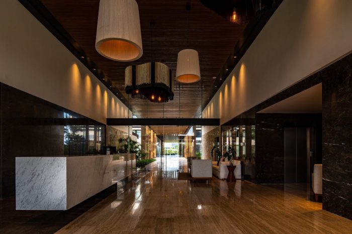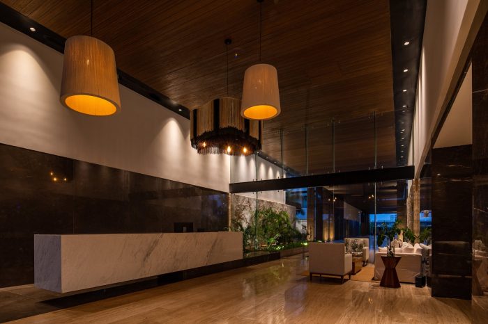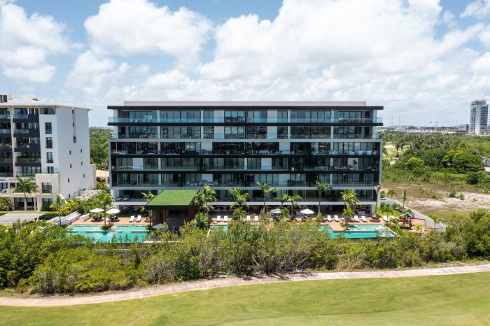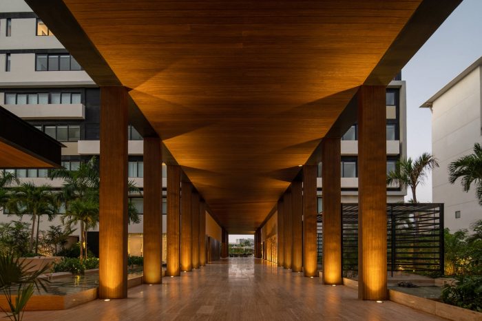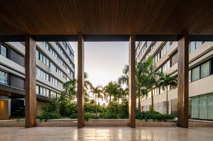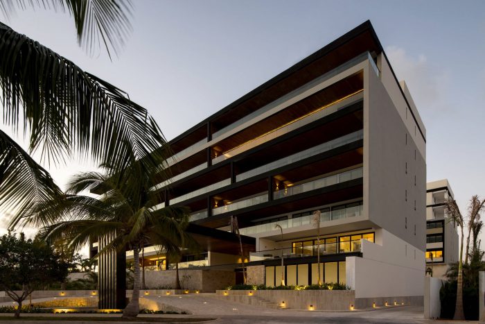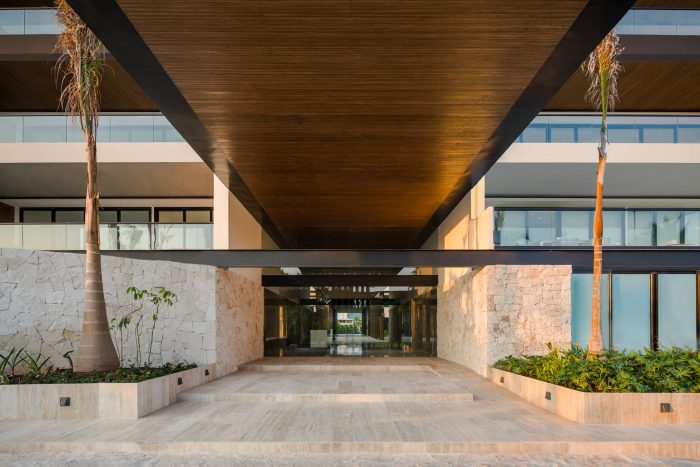 Antaal is a complex of seven levels, and forty-two housing units. There are five different typologies of various sizes, designed for different stages of life. While the smallest has two rooms, the largest typology has five. As mentioned, the views and the feeling of peace were the most important while conceptualizing the project, for which large terraces with grills were proposed in all units that frame the skies of the Yucatan Peninsula, as well as the Caribbean Sea of one side and a nature reserve on the other. Among the amenities are wellness areas, games area, outdoor terraces, a bar and a multipurpose room.