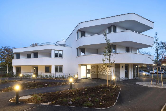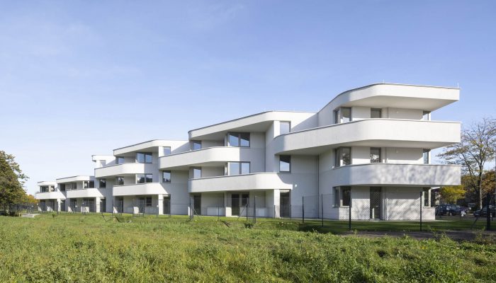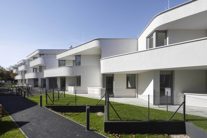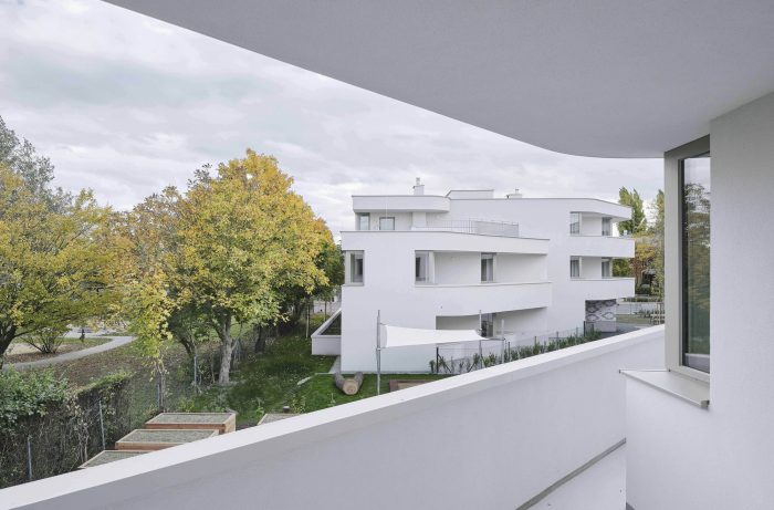 Housing in Anton-Schall-Gasse is social housing located on the edge of Vienna’s Floridsdorf district, a place where the city melts into the countryside. This project infuses affordable architecture into a dexterous, strikingly sculptural solution for an extraordinary site. To the north, the parcel faces onto the wooded pastures surrounding the Marchfeld Canal, a waterway built in the latter 20th century for agricultural irrigation. To the south lies the Ernst-Theumer-Hof – a very charming, 1980’s housing-estate with a long, green common at its center. ASG’ s two differently sized blocks form an eye-catching apex for the Theumer-Hof while they delineate a strong, stunningly articulated edge towards the park-like pastures.