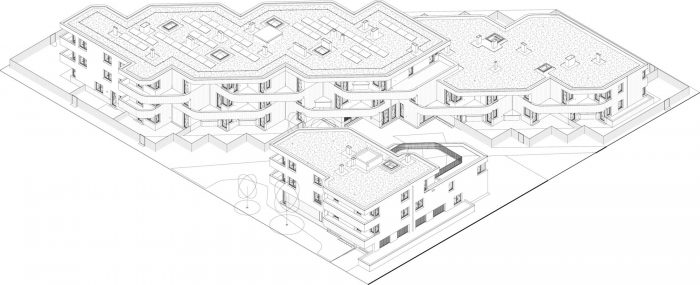 Warm water is provided by rooftop solar panels, supported by electric boilers for peak usage and overcast days. The simple and cost-effective construction produces a loft-like building shell that is subdivided using drywall partitions. This system can be economically retrofitted for a variety of uses without affecting the buildings’ structural integrity. This endows the edifice with great programmatic resilience and ensures an extended – and therefore ecologically sensible – usable life cycle.