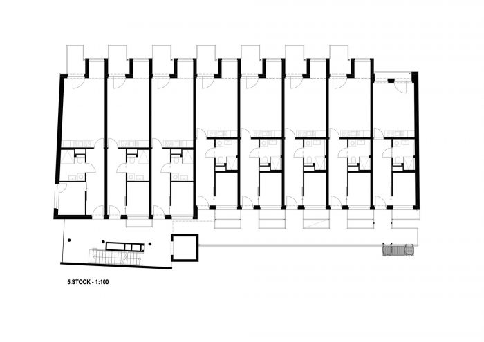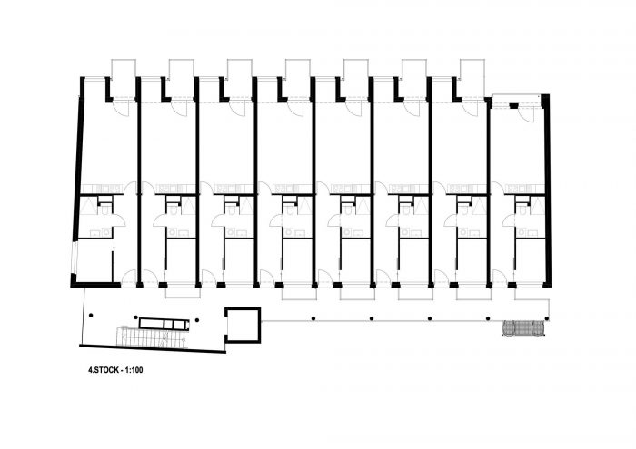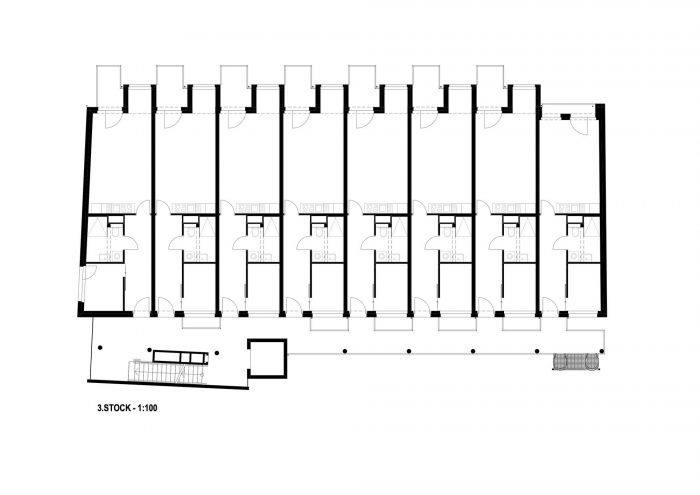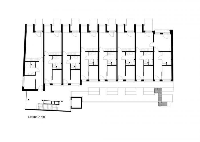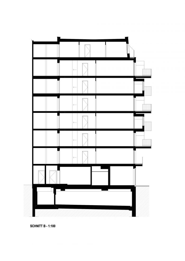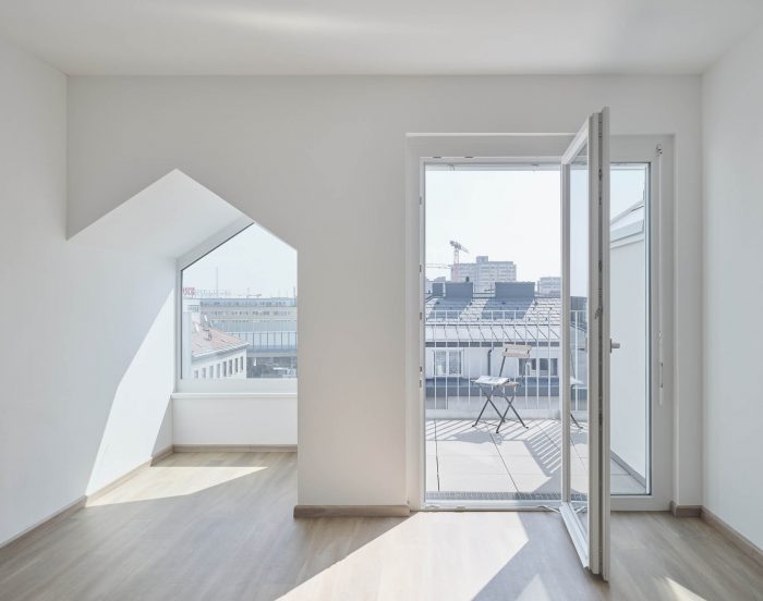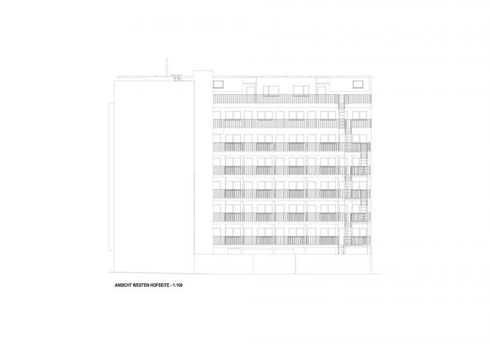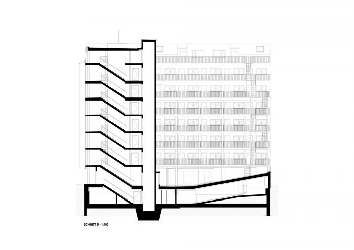 In further phases, optimal light conditions were achieved by orienting all of the apartments facing South-East. Noise pollution was reduced by the same measure since the orientation towards a more quiet side street acted as natural sound abatement.
