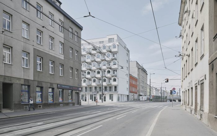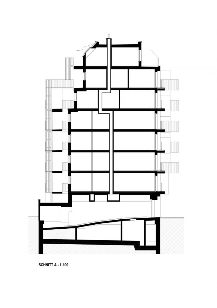 该建筑的立面由传统的维也纳Schrebergardens(小型、亲密的花园社区)组成,在一个以商业用途为主的社区中表达了强烈的城市发展特征。