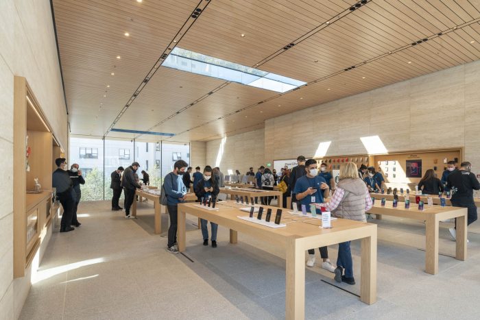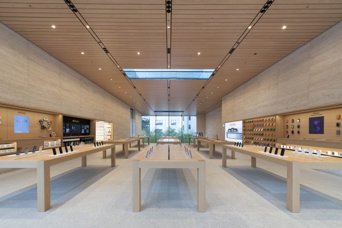 Apple Bagdat Caddesi is the result of a close collaboration between Apple's design teams and the integrated architecture and engineering studios at Foster + Partners. The design responds to the site and its unique environmental conditions to create a simple and harmonious form. The structure spans the entire width of the store, creating an impressive, column-free interior volume, which emphasizes the visual connection throughout the length of the building.