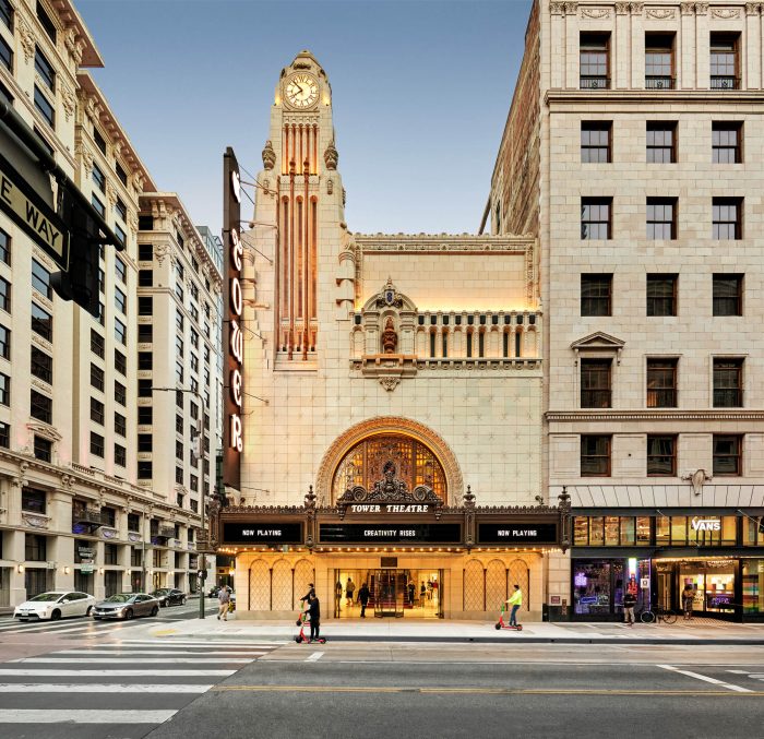 Designed in 1927 by prolific motion picture theater designer, S Charles Lee, Tower Theatre was the first movie theater in Los Angeles built to show talking movies. The design restores the distinctive clock tower and exterior terracotta facades enhances historic interiors and improve the marquees and the Broadway Street elevation while upgrading accessibility to ensure the building will survive and serve the community long into the future.