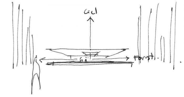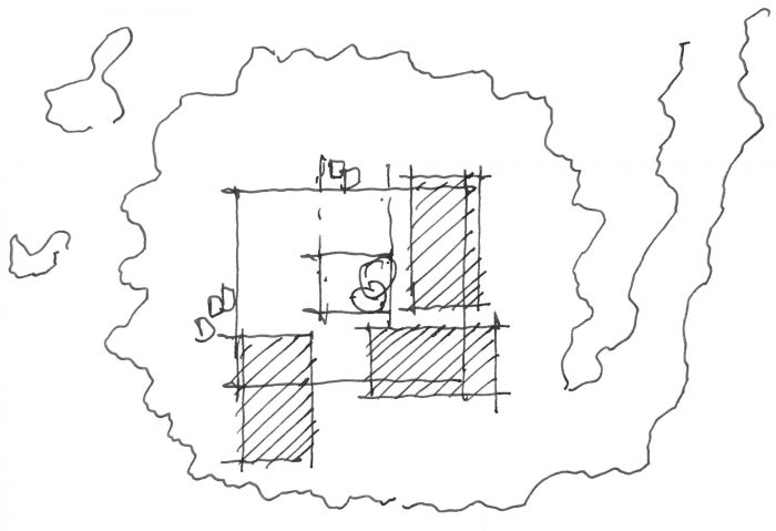 The Apple Tree. During the very first explorations of the concept, the architects sought a sensitive approach to drawing nature inside of the house, while the owner embraced vivid childhood memories of growing up in an orchard environment. The apple tree was symbolic of his earliest encounters with nature as a child, and of the continuity of that connection years later while picking apples with his own children, part of an enduring tradition of quality time spent with the family in nature’s embrace. The apple tree was instantly incorporated into their collective vision, becoming the core of the project.