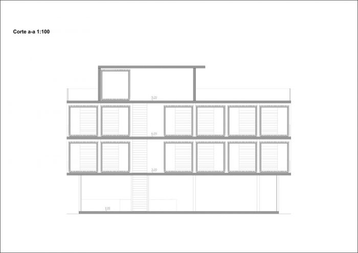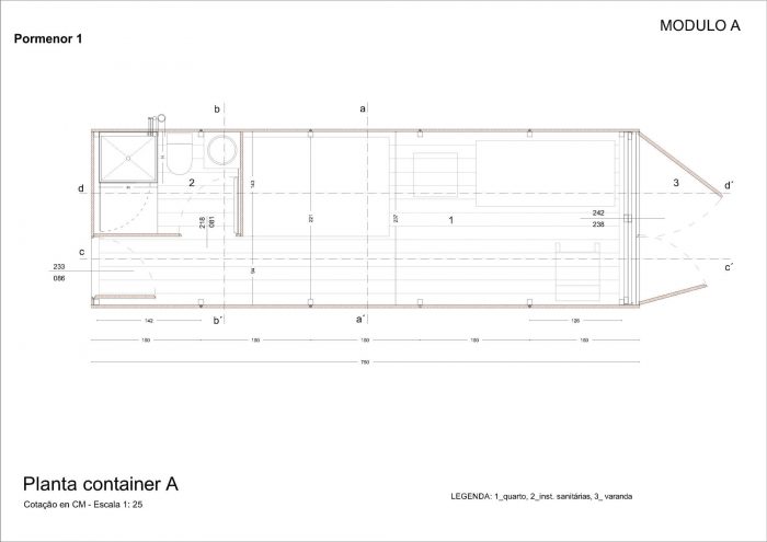 The first floor and the second floor have quite the same disposition: 6 container sized rooms and a storage.