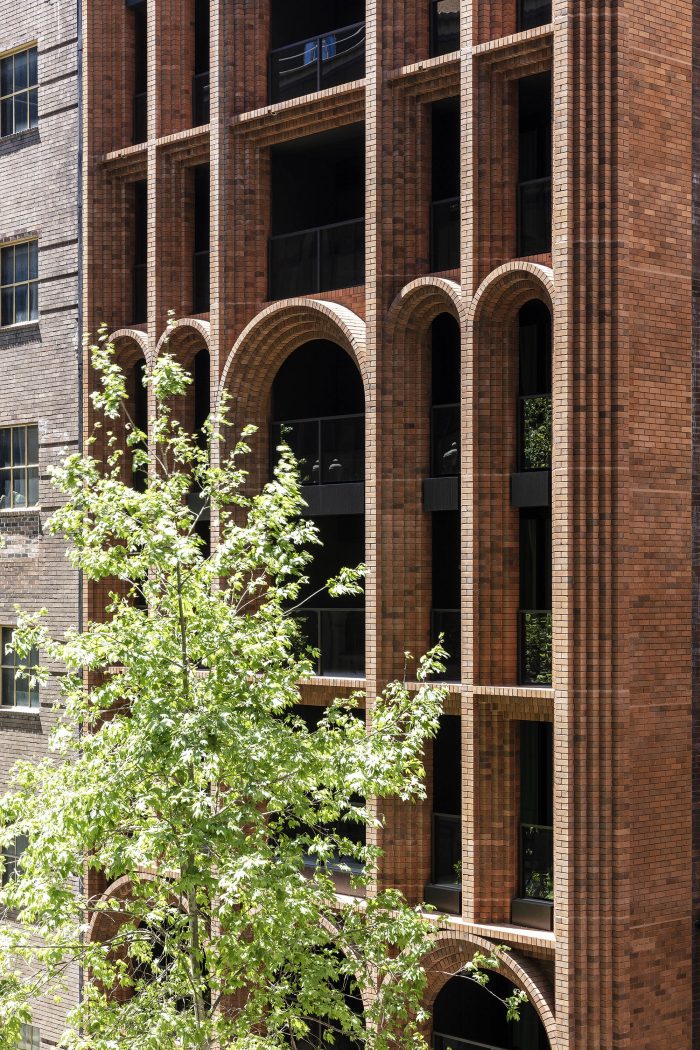 The concept relates to the historical context of the site. We carefully studied the proportions of the arches and materiality used historically in Sydney. The design has a heavy masonry character at the base, whereas the tower above has finer, lighter materiality. Despite our expectations, we have been overwhelmed with positive messages about the use of traditional brickwork. People have responded to the warmth and use of traditional methods being brought back to a modern city center where most buildings are glass and metal.
