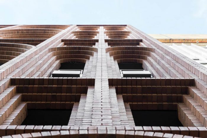 Inspired by the masonry component in the significant heritage buildings next door; The Red Cross Building and Andrew Bros Warehouse, and drawing from their characteristic arches, a duality is introduced to the façade and represented by the varied aesthetics of the podium and tower. Informed by the curvilinear nature of Sydney Harbour and the brickwork in neighboring buildings, the materials and details have a level of intricacy and authenticity that relates strongly to Sydney’s past. The majority of the city has flat-topped buildings everywhere. Arc explores an opportunity to open up the rooftop. We designed to celebrate the great outdoor lifestyle that Sydney is famous for, and the first high-rise residential design to break the mold.