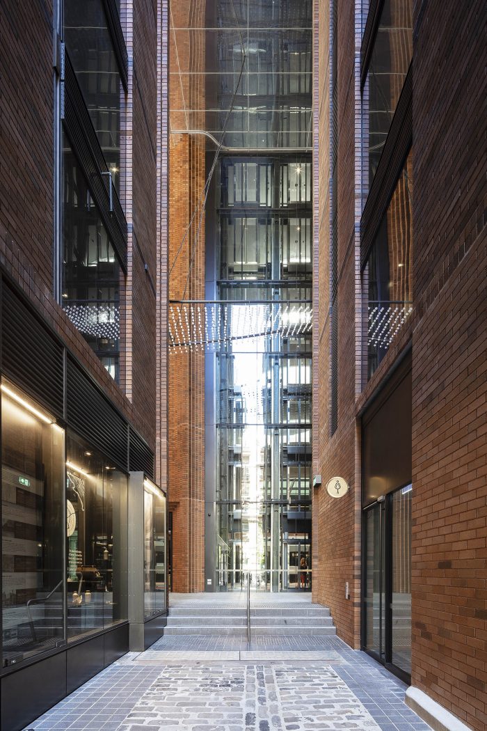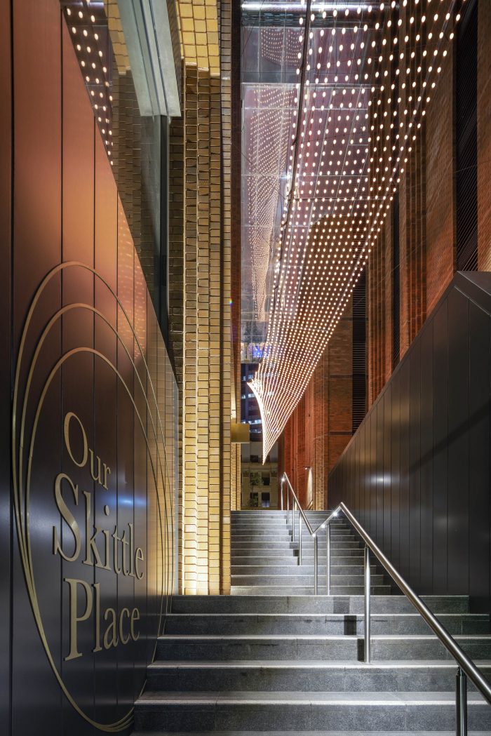 这座建筑结合了新与旧,手工制作的砖砌裙楼,以及有机的屋顶特征,旨在为悉尼的未来增添更多特色。这座26层的塔楼是一个真正的住宿混合体,包含135套公寓,86间'Skye Suites'精品酒店客房,8个零售和餐饮店。设计中包括一个零售区,位于一个8层高的公共通道下面,重新激活了历史悠久的Skittle Lane。