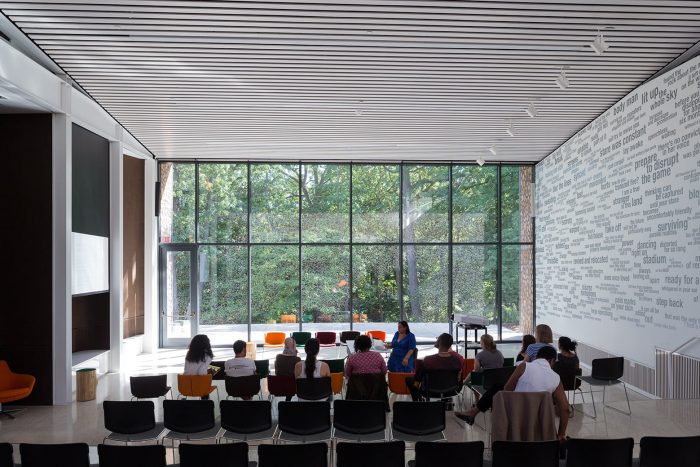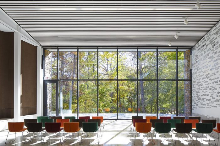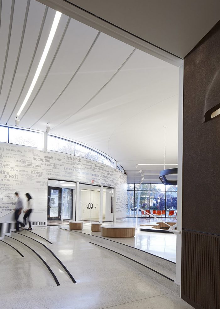 从历史上看,为社会正义而召开的会议都是在最非正式的场合进行的,例如,这个国家许多最重要的民权集会都是在教堂的地下室、客厅,甚至是厨房的桌子旁进行的。从头开始设计一栋建筑,以促进讨论并使这项工作变得可见并欢迎所有人,这种挑战在许多方面是前所未有的。阿库斯社会正义领导中心的目标是将社会正义的话题从地下室带出来,正视公众意识。