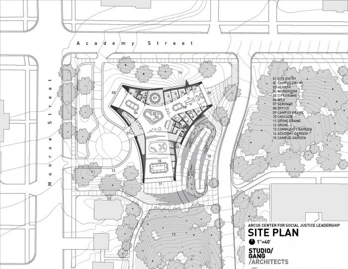 Historically, convening for social justice has taken place in the most informal settings, with many of this nation’s most important civil rights gatherings, for example, taking place in a church basement, a living room, or even around a kitchen table. The challenge of designing a building from the ground up that fosters discussion and renders this work visible and welcome to all is in many ways unprecedented. The Arcus Center for Social Justice Leadership aims to bring social justice topics up from the basement and squarely into public consciousness.