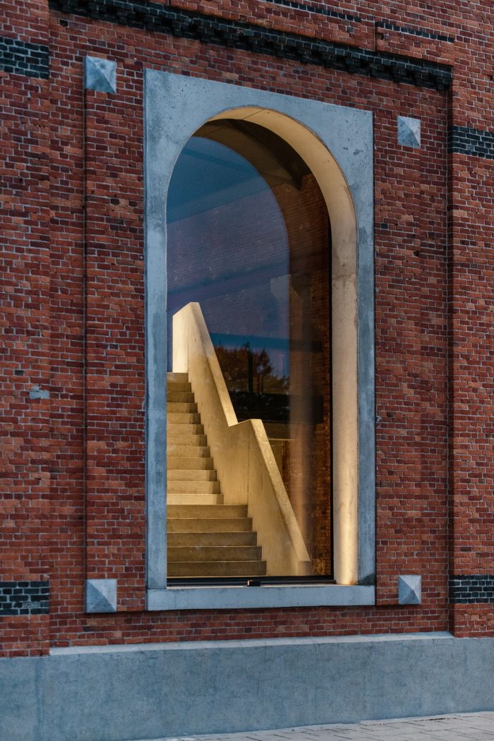 When renovating this historically valuable building, it was important to preserve its industrial character. The building is distinguished by typical brick architecture and consists of three symmetrical bays. The distinctive façade is rich in beautiful nuanced brick ornaments. Although the warehouse was not included in the list of protected buildings, it is considered a valuable architectural heritage. The exterior of the building was restored to its full glory using a special cleaning process to add value to the overall site and the city.