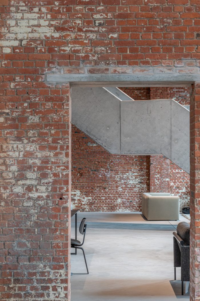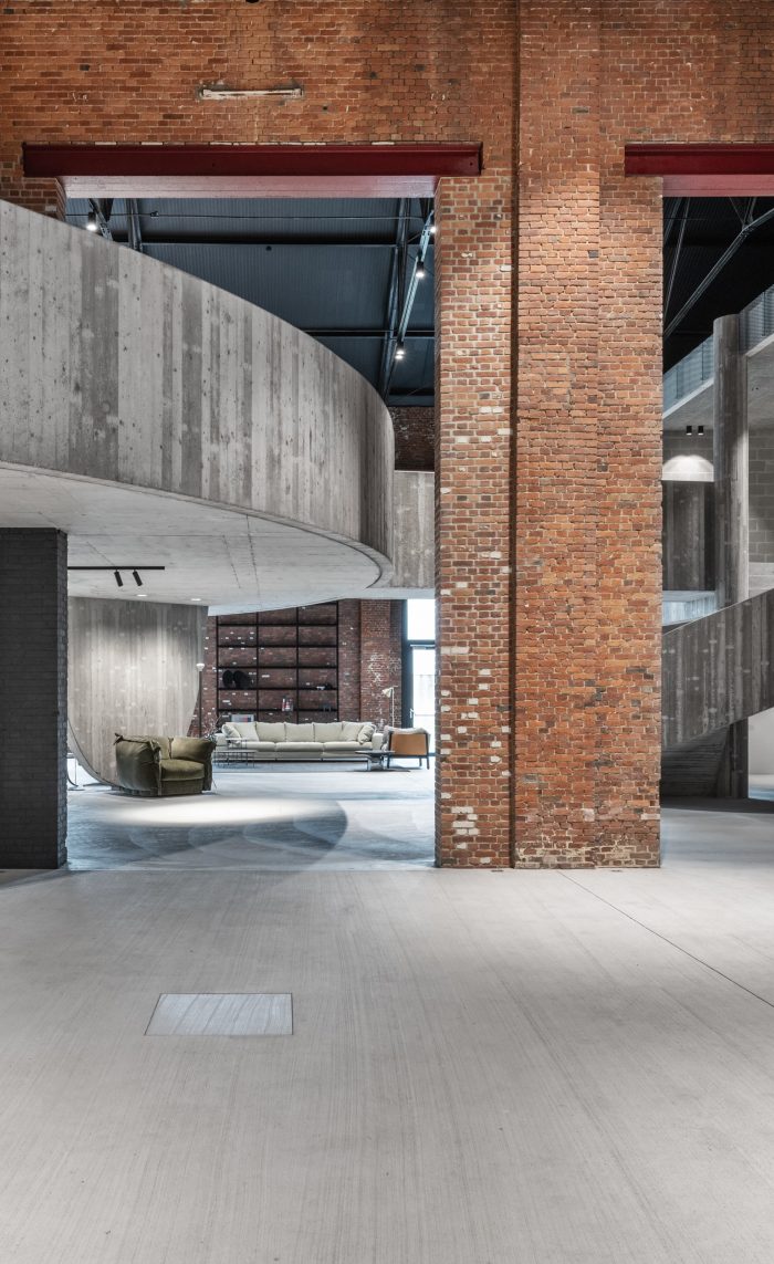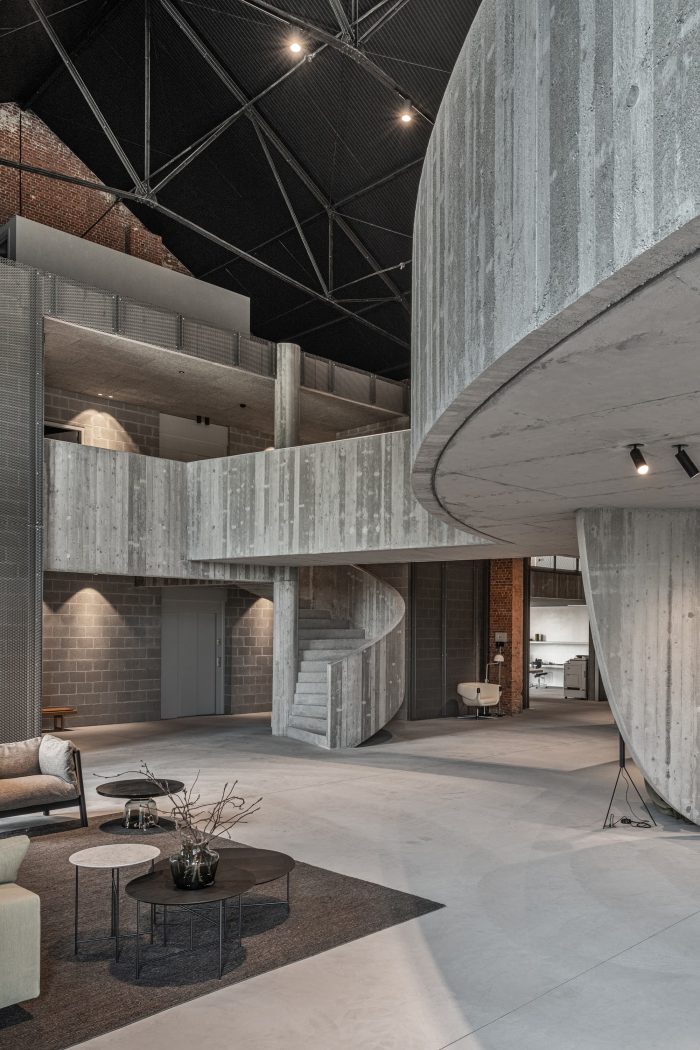 The architectural language and interior choices are used to reinforce the industrial and historical character of this valuable building without falling into stereotypes. The building's ultimate function creates internal tension as a showroom for furniture. The modern items on display will enhance the whole and vice versa. The experience was sought in the broad sense of the word. A place where people can explore in peace.