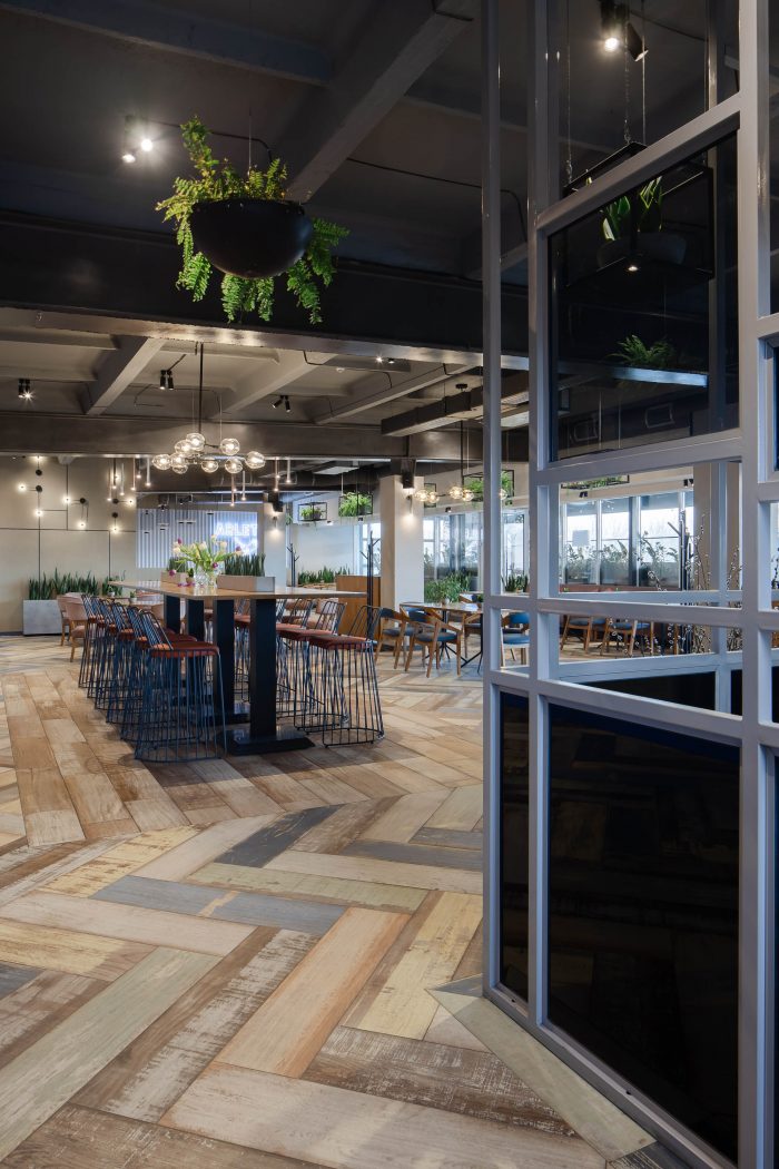 为了营造舒适的氛围,我们选择了柔和、温暖的灯光。我们还在室内加入了霓虹灯,以强调设计空间的工业氛围。大面积的琉璃露台通向城市的中心广场,是城市景观的好视点之一。露台与这个空间相得益彰,成为了它的亮点,因为现在这里是众多活动的举办地。