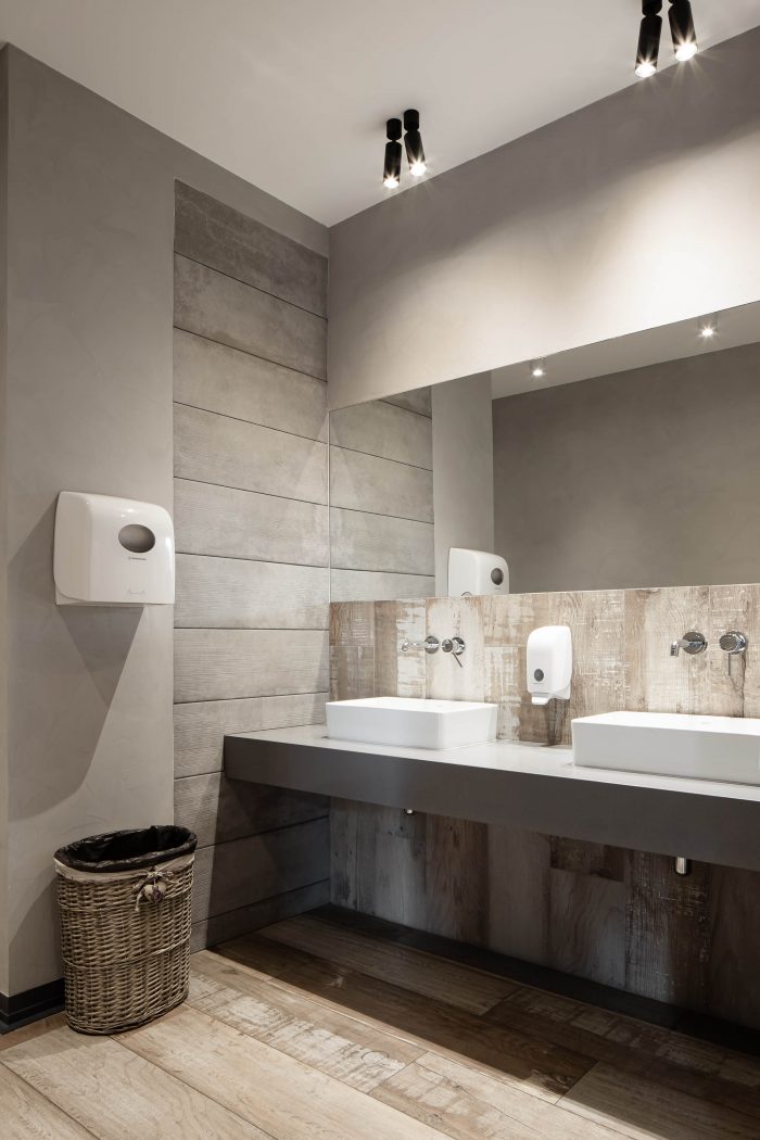 我们的目标是为餐厅的大主厅设计,改善露台,解决入口组的设计。主厅座位数65个,露台上:65个。该机构总面积为600平方米。在创造这个空间的时候,留下了现有的结构,如金属梁、房屋的混凝土板。这件事是为了在那个地方的内部设置工业主义的风格。开放空间的概念构成了餐厅内桌椅和游客活动的规划方案的基础。在空间设计的同时,所使用的材料也给了来访者一种舒适的感觉,让大人和孩子都觉得有趣。这就是为什么我们将混凝土的灰色和木头的中性颜色与椅子、吧台和地板陶瓷的重点颜色等明亮的点缀相结合的原因。在墙面装饰上采用了自然的色彩和纹理。