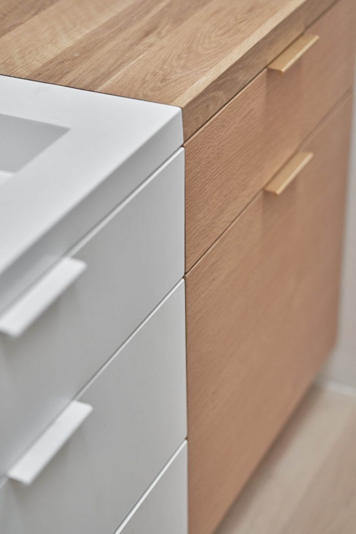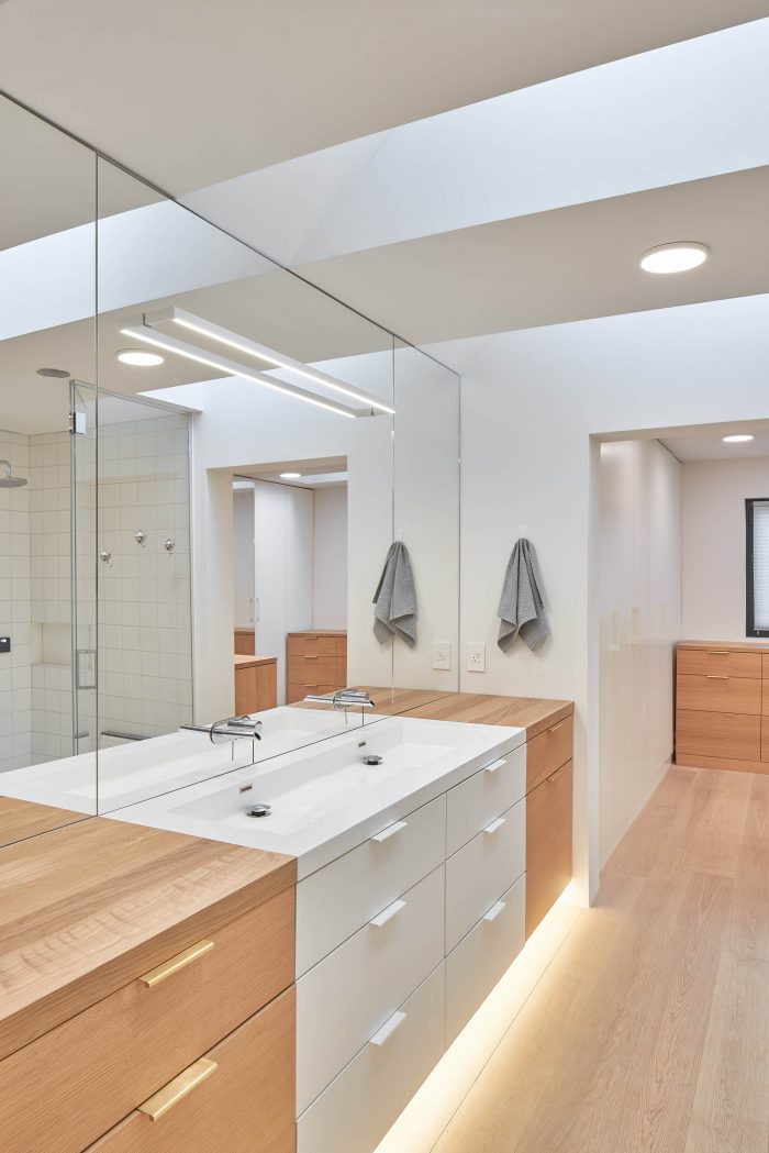 The home is organized to offer unique individualized spaces for all ages by providing multiple opportunities for gathering and seclusion on all four levels of the home. There is a space for everybody as our clients represent a growing number of mixed families within the Halifax peninsula. Custom millwork has been designed, built, and installed by Peter Braithwaite Studio Ltd. Feature countertops, light fixtures, furniture, hardware, and faucets to compliment each area of the house. The kitchen is designed right down to the last drawer organizer, box joint, and custom fabricated cutlery block.