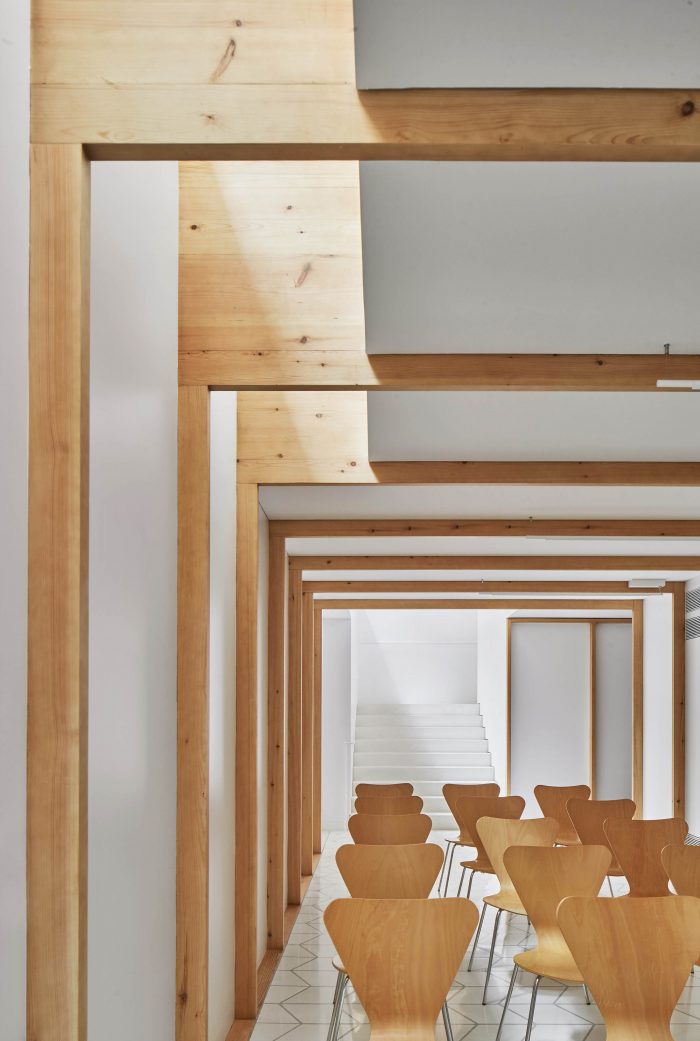 结构上的修改是为了,除其他外,能够在街道层面上进出,并引入一个连接两层楼的空隙。开放的空间衔接了分支的不同区域,邀请自然光进入地下室,并在各层之间容纳一个新增加的楼梯。