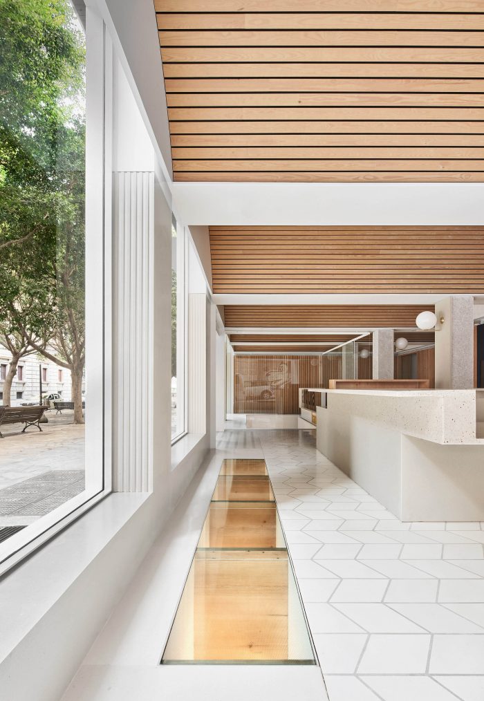 Structural modifications have been made to, among others, enable access at street level and introduce a void connecting both stories. Opening the space up articulates the different areas of the branch, invites natural light into the basement and accommodates a newly-added staircase between the levels.