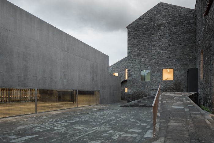 The project of the Arquipélago does not exaggerate the differences between the old and the new buildings. On the contrary, it seeks to unite the different scales and times of its parts throughout a pictorial manipulation of the form and materiality of the buildings - the existing constructions are marked by the volcanic stone masonry and the new buildings are characterized by an abstract form, without reference or allusion to any language, built-in concrete with local basalt inert continuously working with the variety of surfaces’ textures and rugosity, complementing the mass of the buildings with the emptiness of the patios.