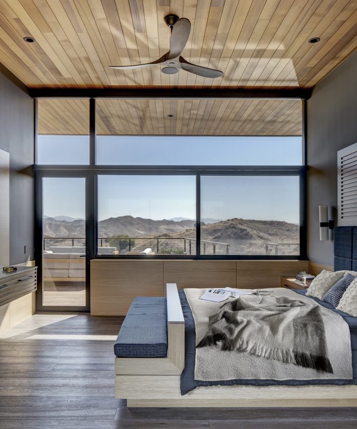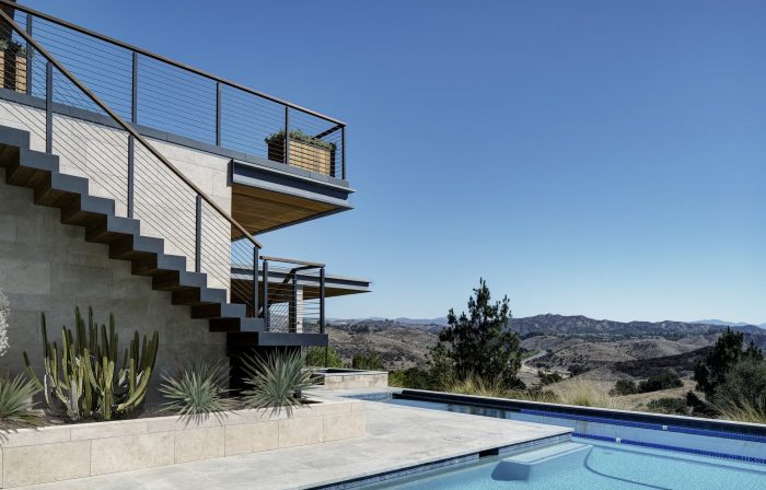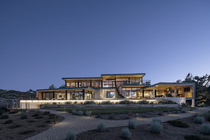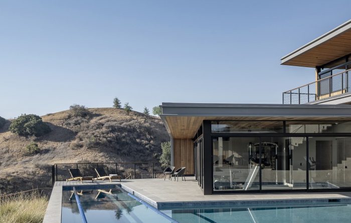 In response to the challenge of creating spaces to view, measure, and engage with the diversity of the surrounding semi-arid landscape, the Arroyo Oak House is open and transparent, immersed in natural light, and visually integrated with the surrounding Sierra Pelona Mountains. Optimizing the connection to this unique topography, multiple interlocking program-specific pavilions are oriented across the site. The placement and overlap of these pavilions result in varying scales of gardens, terraces, and decks, encouraging landscape elements to literally and perceptually permeate the home’s interior.