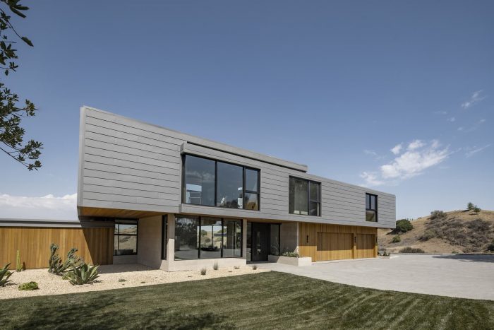 Weary from years of two-hour work commutes, our client engaged us to develop a new residence within a mile of their Southern California manufacturing company’s facility and offices. Interested in maintaining a similar connection to the land as their current residence, an undeveloped rugged sandstone terrain, bisected by a dry river, and dotted with native yucca, oak, sagebrush, and beavertail cactus, was selected as the site for the new home.