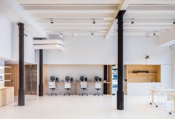 Challenged by the presence of the Born Market, the perfect symbiosis between the resulting project for the dermatological products company pHFormula and the preexisting buildings and sorroundings was our starting point. The resulting ‘Art Club Born” stays true to the company image but also coexists with the strong presence of the past in the area.