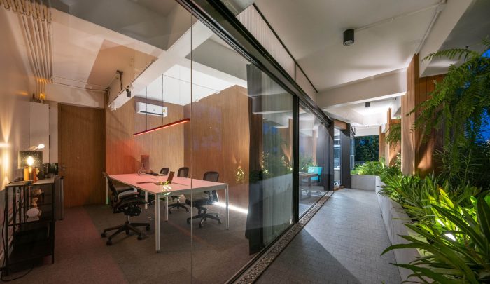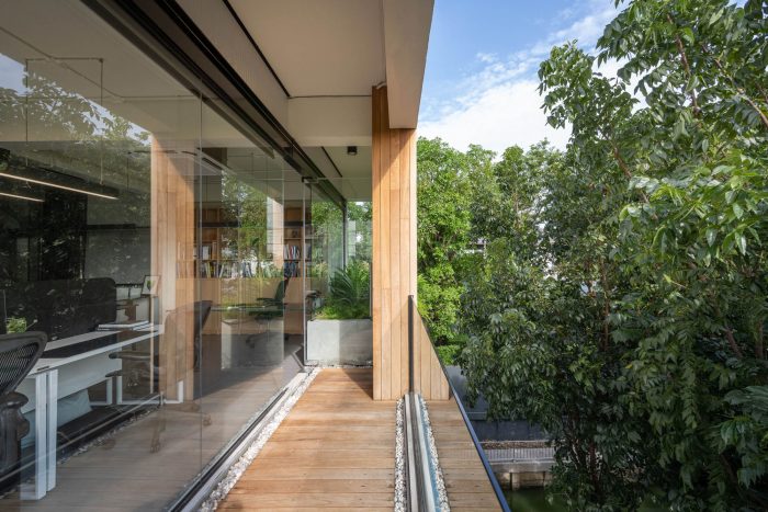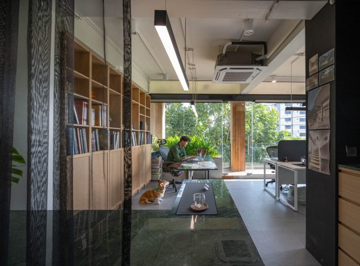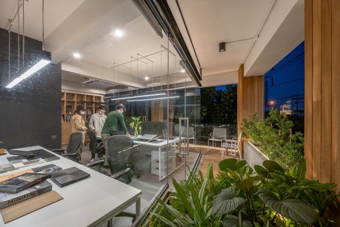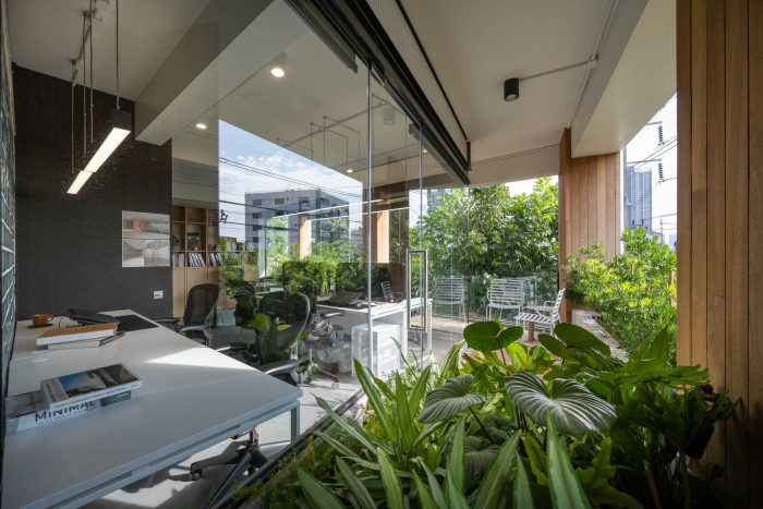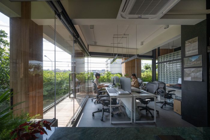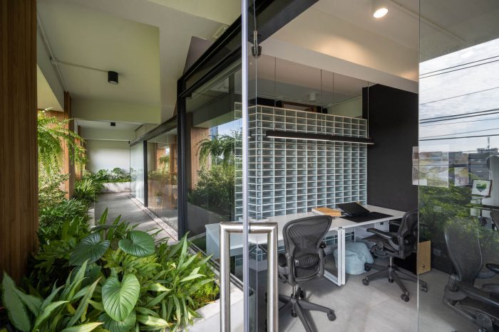 在Klongsarn区的一家公司做了4年的初级建筑师后,我发现了大树的美丽,河流的芬芳,草地和土壤的触摸。然而,小鸟必须靠它的翅膀成长和流动。建筑师也是这样生活的。在设计的世界里飞行了3年之后,我正在寻找一棵大树来建造一个庇护所,有一天会发展成一个大房子。命运给了我一个位于Charoenrat路的联排别墅的空三楼,这与我正在寻找的理想办公室的概念性形象相反。