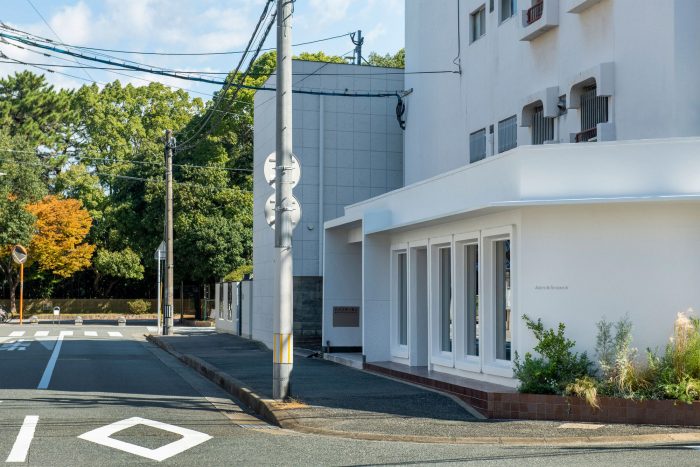 The entire exterior was finished in the same white ricin spray as the existing building, and the same tiles used in the interior were applied to the exterior floor. While blending in with the existing building and environment, the use of tile creates a place that shares an image with Ohori Park while providing a moderate sense of spatial connection.