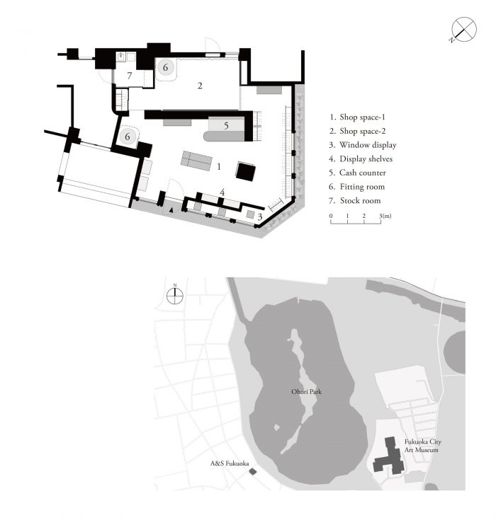 艺术与科学公司在福冈的一个新店的计划。基于 "高品质的日常生活 "的概念,客户通过仔细检查产品,如衣服和其他个人用品,以及由工匠制作的工艺品和产品,来创造一个商店,以追求可以持续多年的优质产品。项目地点位于离福冈市中心的大濠公园不远的一个安静的住宅区。