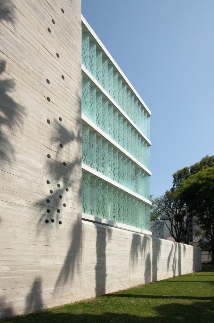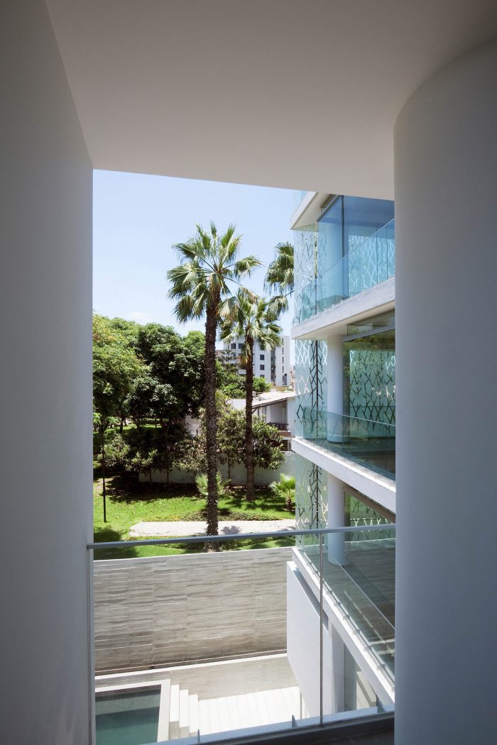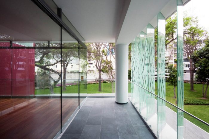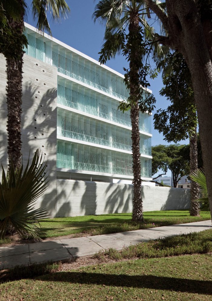 The project is located on the edge of a typical urban park in San Isidro.