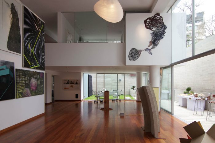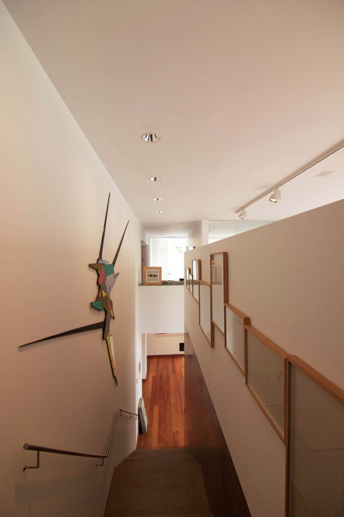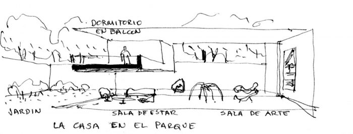The “house in the park” has its own garden and consists of a large double height art gallery. From the gallery the view extends across the garden to the canopy of trees in the park, thus negating the sensation that one is below street level.