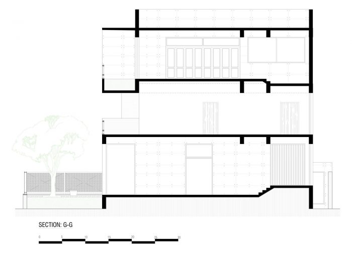The 3 storey single family retreat home with awning verandas is visible in the milieu of the span of abundant green which posed both a challenge and opportunity at the same time. The west façade of the residence looks upon a vast expanse of military farmland with a prominently standing Chatim (Alstonia Scholaris) tree meeting the eyes of the onlooker.