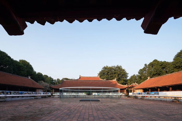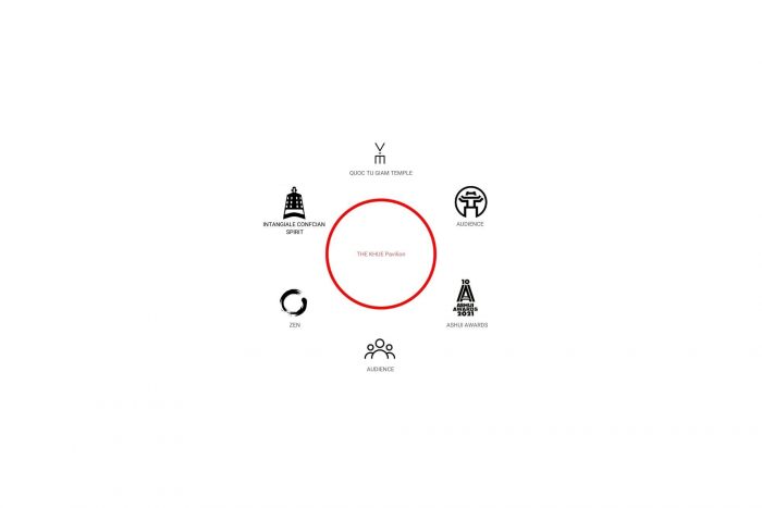 Concept - The Temple of Literature has the tangible values of Architecture and the intangible values of the Taoism spirit, which is a unique material that should be honored. We consider the entire Temple of Literature as a perfect exhibition space, a highlight of Hanoi. The additional stage acts as a prism with a modern perspective, which reflects all this value as a message to preserve and develop the significance of the heritage to future generations. Inspired by the image of the Khue star, which is the symbol of literature, Khue Van Cac is the place where the ancient poets always wanted to set foot, and mark it as the name for many old bards. Ashui Pavilion 2022: The Khue, appeared and shined at the Temple of Literature, which honor the individuals and collectives who won the Ashui Awards 2021 and the legacy of the Temple of Literature.