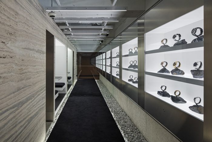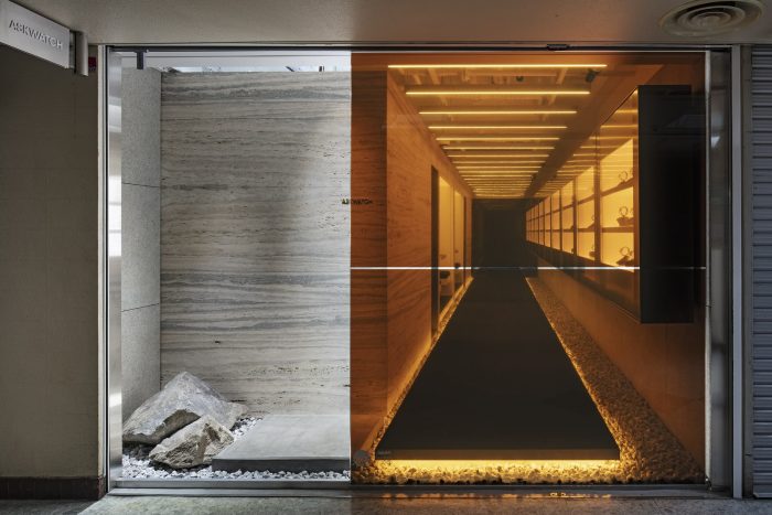 Interior design for a second store specializing in luxury watches from around the world. The site is part of “Nakano Broadway”, a commercial facility known as a mecca for subcultures, with a high density of various products and small stores. In recent years, it has also become known as a mecca for luxury watches, with many watch stores lining the streets. Since the store is in a unique commercial facility, it was necessary to follow the brand image created by the main store, but also to reconstruct it in consideration of the different environment and relationship with the clientele.