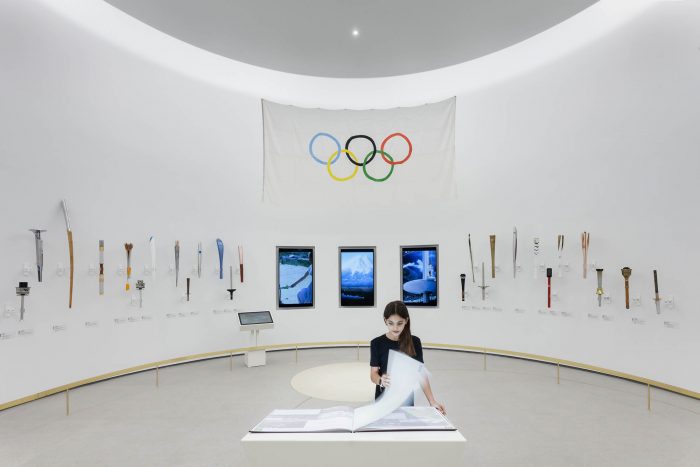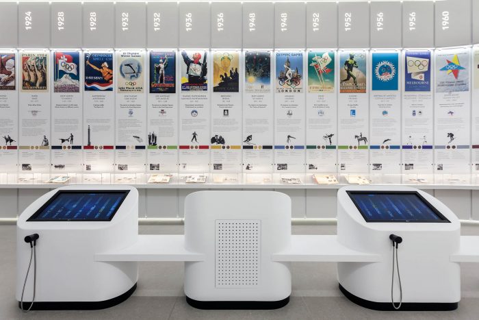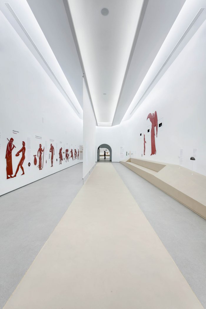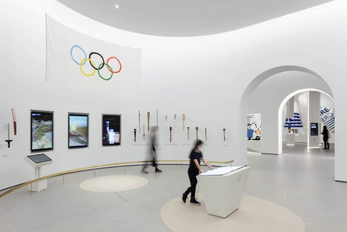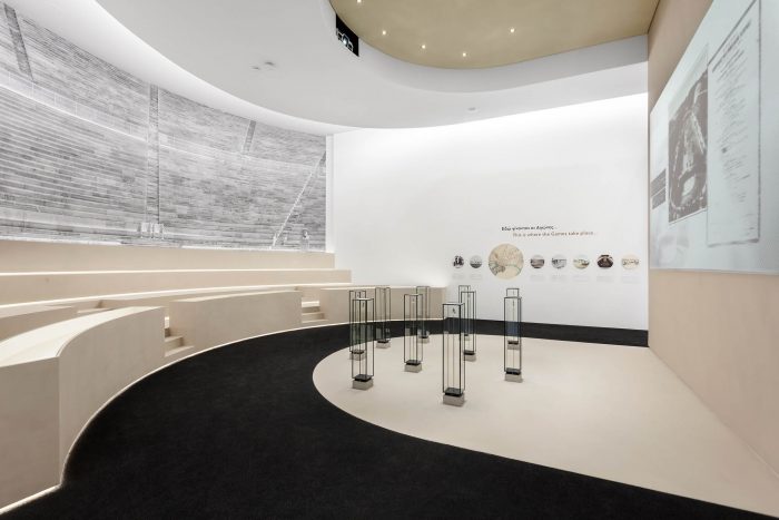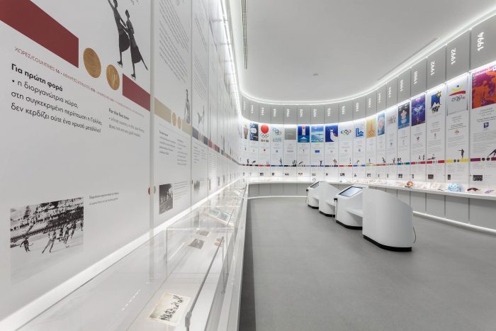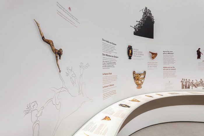 ‘We had infinite sources of inspiration for the overall composition,’ says KLab’s director Konstantinos Labrinopoulos, ‘as we had many objects to work with, supported by other museums and cultural bodies and the vast archaeological treasure of Greece. Our design, to an extent, highlights the sense of sporting competition, through the depictions of athletes in motion, which in turn is a narration of the idea of evolution of sports through time.’