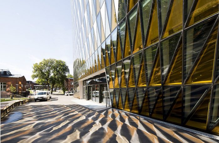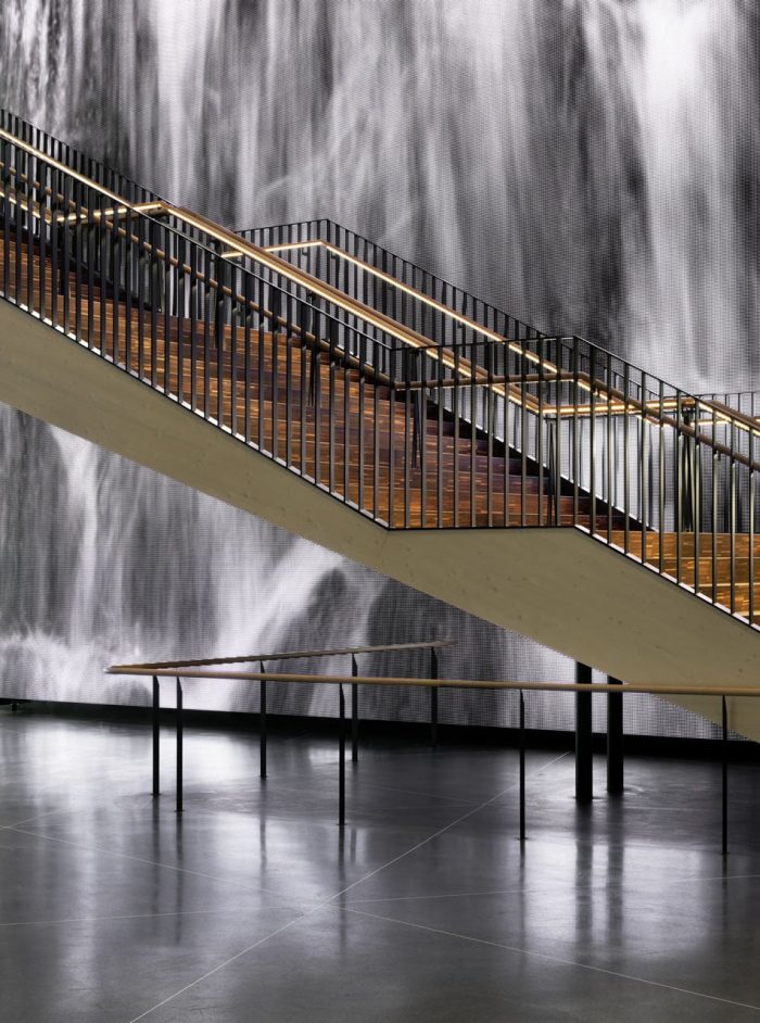 日光、效率和能源消耗(大礼堂已达到可持续发展的 "银 "级)一直是规划大礼堂时的一些关键标准,但最直观的表述永远是倾斜的立面。