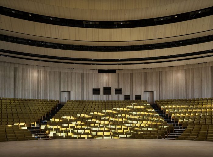 An auditorium at a university, or aula to use the word of the classical languages, goes beyond the task of a lecture hall. Its ceremonial roots in the church and the architectonic heredity in the theatre, makes the aula today’s secular society’s most solemn and ritual space. It is not only a tribute to science and education, but also a site for strong collective experiences.