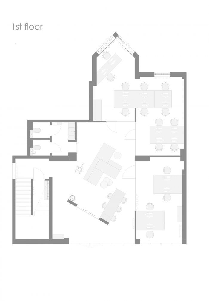办公空间的概念是为一个年轻的IT专家团队开发的,他们被一个共同的想法和愿望团结在一起,这成为了内部开发的起点。一个大型的开放和可理解的空间与保留了原始形式的整体混凝土结构是一种基本元素,为整个空间设定了某种随从和基调。竖立的结构和隔断有一个特定的功能负荷,即划定办公区域。