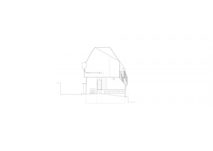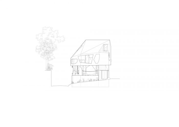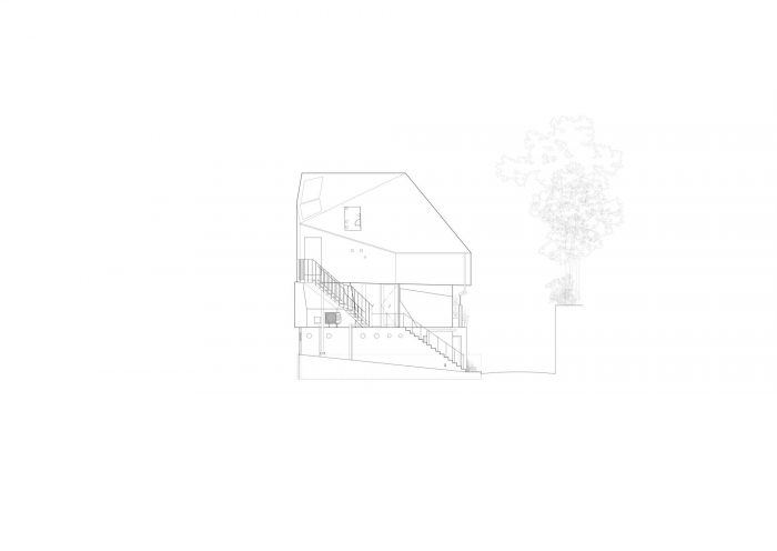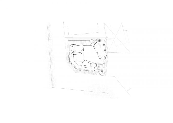 由此产生的建筑唤起了被地壳变质作用部分抬升的地形。除了建筑主体的开口形式,以及附着在建筑上的楼梯、扶手、雨水槽和管道之外,建筑内部和外部还有许多不允许轻易探索设计基础的实体,例如似乎是即兴创作的照明装置,像石板一样独立存在的混凝土块,以及以不成形的方式切割的墙壁。貌似毫无根据的形式语言,使得即使是石板台阶和梁柱形式看起来也像是偏离了结构原理的无用之物。